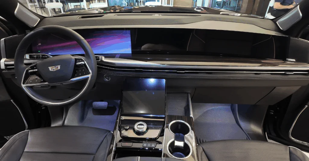 El modelo presenta novedades relevantes como una parrilla deportiva iluminada que realza el emblema de Cadillac, aros de lujo de 24 pulgadas y una moderna consola central con sistema táctil.